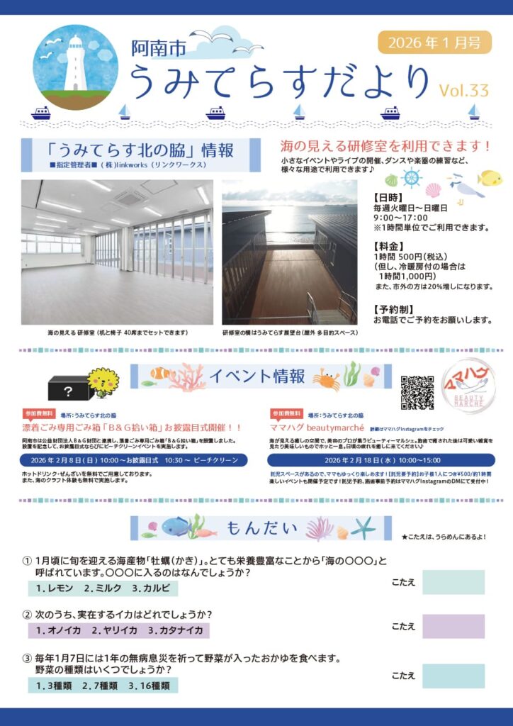 【阿南市うみてらすだより Vol.33の2026年1月号 発行しました!】